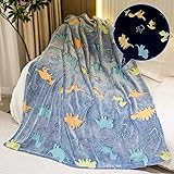 Memorecool Glow In The Dark Blanket For Boys Girls Fuzzy Dinosaur Blanket Kids Throw For Bed Couch Luminous Dino Blanket Cozy Flannel Kids Blanket Soft Throw Blanket 50x60 Inches